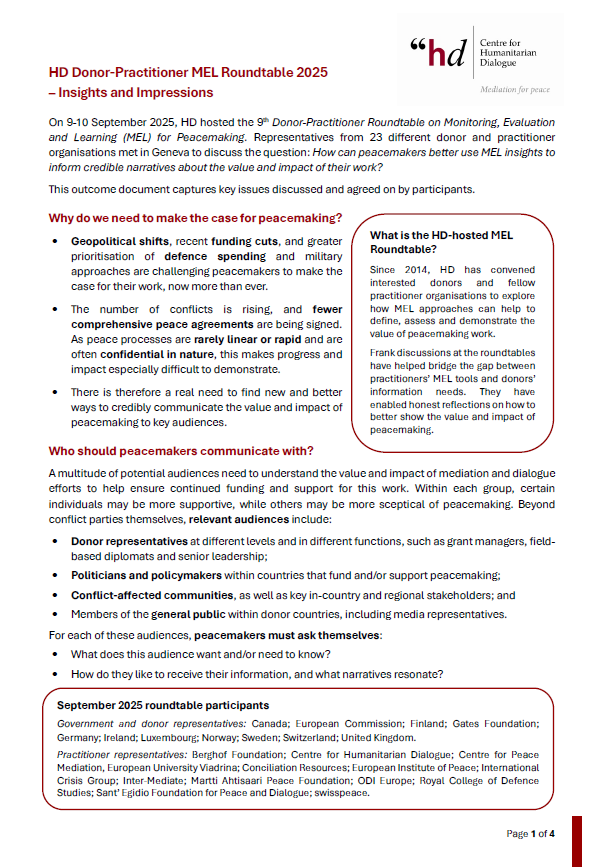 Produced in collaboration with the Swiss Federal Department of Foreign Affairs, this easy-to-use and accessible resource provides practical guidance and support to professionals engaged in mediated peace processes, to support ethical and professional decision-making.